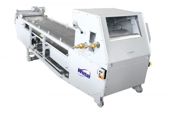 YPG系列不銹鋼帶水冷壓片機由壓輥,不銹鋼帶,破碎輥和行走系統組成,從擠出機擠出的熱熔狀態的物料被壓輥壓成1-1.5mm厚的片狀,然后片狀物料在輸送過程中用冷水噴淋到不銹鋼帶背面,持續將物料冷卻到固態,破碎成片狀物料落入料斗,注意:冷卻水溫度應≤14℃